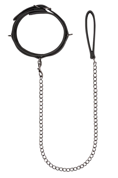 - Halsfessel aus Lederimitat & Metall inkl. abnehmbarer Leine